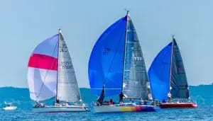 The multihull fleet starts with a five-minute warning signal at 7:55AM, followed by the monohull fleet at 8:05AM.